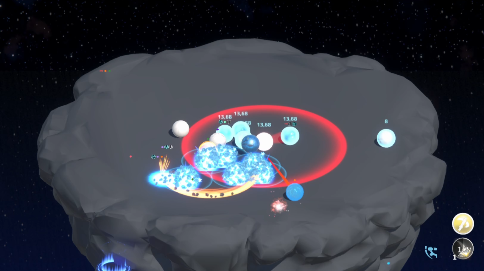 - Enemies have no health - defeat them by knocking them off the arena or applying effects